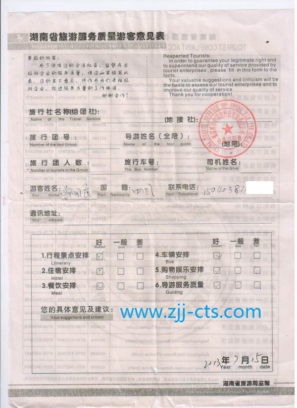 沈阳郝先生一行10人旅游质量回馈单